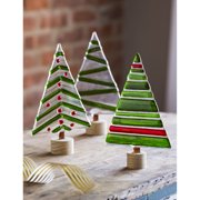 Glass Holiday Tree Tabletop Decor with Wooden Base