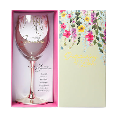 The Pavilion "Sweetest Grandma" Stemmed Wine Glass, crafted from crystal, offers premium quality ideal for celebratory occasions like Grandparent's...
