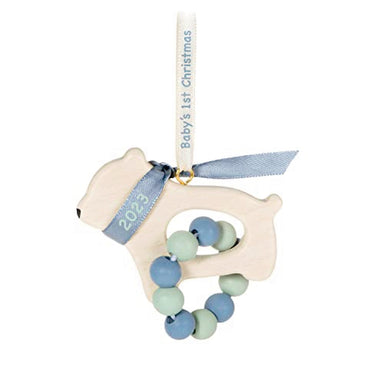 Celebrate a sweet new addition to the family with this Baby's 1st Christmas ornament. Inspired by teething toys, this cute blue and white bear deco...