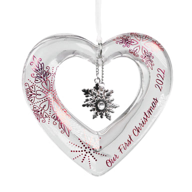 Hallmark Keepsake Christmas Ornament 2022 Year-Dated Share the love with this Our First Christmas Keepsake Ornament. A clear glass heart with a pai...