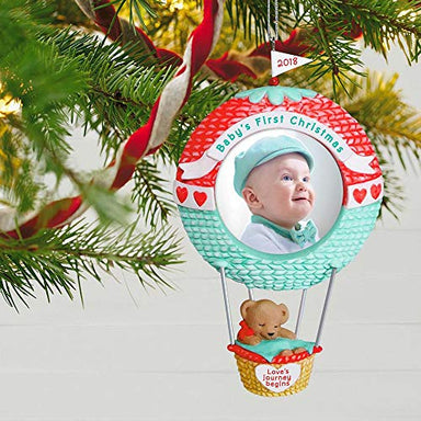 Hallmark Keepsake Ornament 2018 Personalized Year Dated, Baby's First Christmas Love's Journey Begins Picture Frame, Photo, Hot Air Balloon