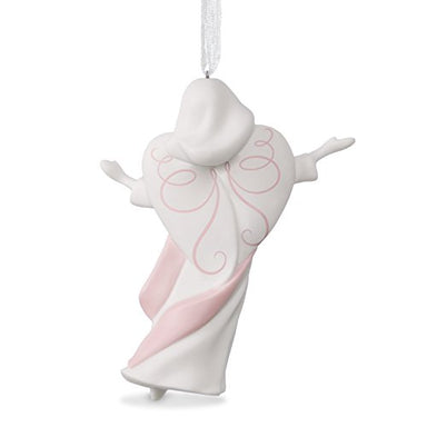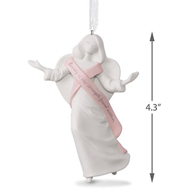 This porcelain angel Christmas ornament is a symbol of strength, beauty and hope for survivors and those fighting breast cancer. Wearing a pink rib...