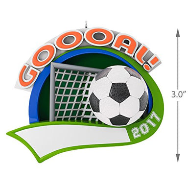 Pass, shoot, score! Get in on the action with this Christmas ornament, featuring an in-goal soccer ball and dated 2017 to commemorate the year. Inc...