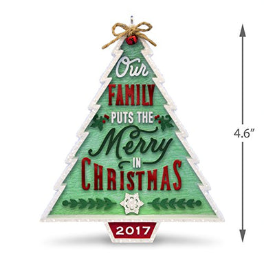 Celebrate the best part of the holiday season-family-with this Christmas ornament featuring red lettering and snow-capped branches. Give this Chris...