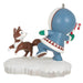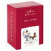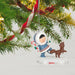 Frolicking with friends is the best way to spend the holidays! This Christmas tree ornament features Frosty and his husky pup pal playing a festive game of fetch with a candy cane in the glittery snow. Year dated 2021.