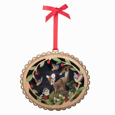 This handsome Santa Claus Christmas tree ornament holds a carved staff in one hand and a fruit-filled basket in the other. Wearing a rustic fur-tri...