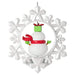 Brighten the holidays with our happy snowflake snow family Christmas tree ornaments. This decoration in honor of Mom features a smiling, spinning snow woman within a pristine snowflake design. Snow mom wears a red scarf around her neck, lime green mittens and a wrapped gift on her head and features a blue script "Mom" placard. Coordinating Dad, Daughter and Son ornaments each sold separately.