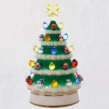 Relive childhood memories with this miniature, retro tabletop Christmas decoration. Inspired by vintage holiday decor, this little tree is decorate...