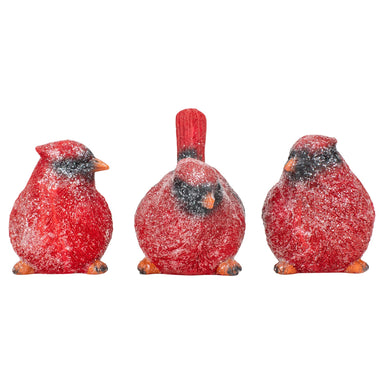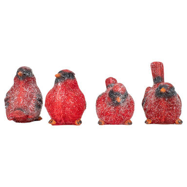 From Transpac Inc. resin cardinal songbird figurine. 4.75"h by 3"w by 5.5"l. Made of resin. Set of 4 cardinals, each with a slightly different pose.